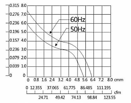 | 型号 Model | 轴承结构 Bearing | 电压 Rated voltage (M) | 频率 Freq (Hz) | 电流 Current (A) | 功率 Input power (W) | 转速 Speed (Rpm) | 风量 Air Flow (CMM) | 风量 Air Flow (CFM) | 静压 static pressure (Inch-h2O) | 噪音 Noise Level (dB-A) |